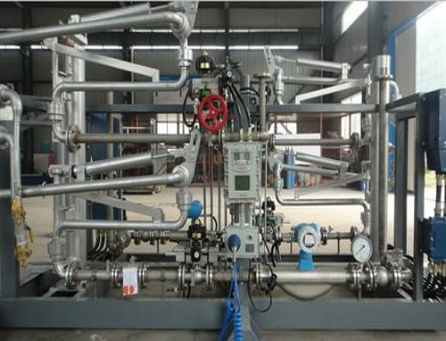 油品定量裝車橇裝組是指將每一個裝車鶴位內的儀表和設備集成在一個專用的框架結構內,儀表和設備包括裝車鶴管、流量計、防溢油靜電報警控制器、壓力變送器、裝車流量控制閥、緊急切斷閥,裝車泵、批量控制器等, 只預留工藝連接口和控制電源和通訊接口,這個整體集成部分稱為裝車橇。與傳統(tǒng)的裝車控制系統(tǒng)就地組裝比較,裝車橇可以節(jié)省現(xiàn)場設計和現(xiàn)場施工量,縮短項目工期,提高裝車控制系統(tǒng)的質量。